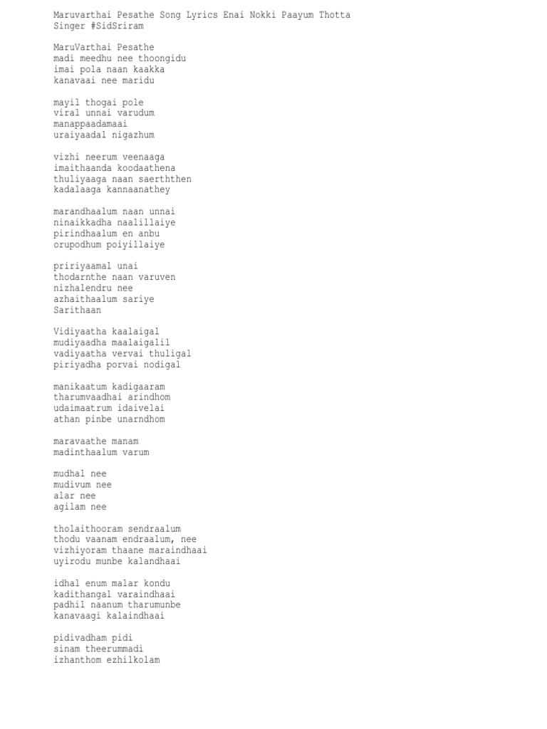 Maruvarthai Pesathe Lyrics - Aşağıdaki maruvarthai pesathe lyrics resimli şiirler kayıt tarihine göre listelenmektedir.