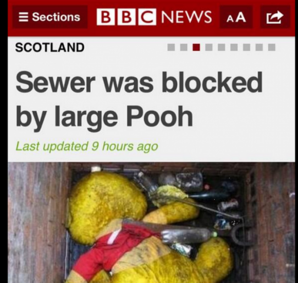 Sewer Blocked By Large Pooh : Scotland's sewage workers discovered some strange items in it's sanitary system.