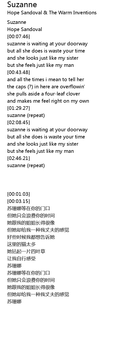 Suzanne Lyrics : The best of leonard cohen.